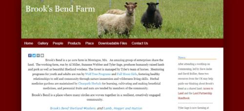 Brook's Bend is a 90-acre farm in Montague, MA. An amazing group of enterprises share the land. The working farm, run by Al Miller, Suzanne Webber and Tyler Sage, produces humanely raised lamb and pork as well as beautiful Shetland woolens. The forest is managed by Tyler's team of horses. Mentoring programs for youth and adults are run by Wolf Tree Programs and Full Moon Girls, fostering healthy relationships to self and community through nature immersion and wilderness living skills. Herbal medicine gardens are maintained by Clearpath Herbals for learning, cultivating and making beneficial medicines, and perennial fruits and nuts are tended by members of the community.